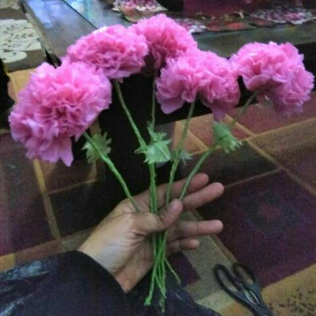 Bunga hias home made dari kantong plastik/kresek bentuk sama ya guys, bisa request warna d kolom commentar dijamin awet dan tahan lama bisa d jadikan .